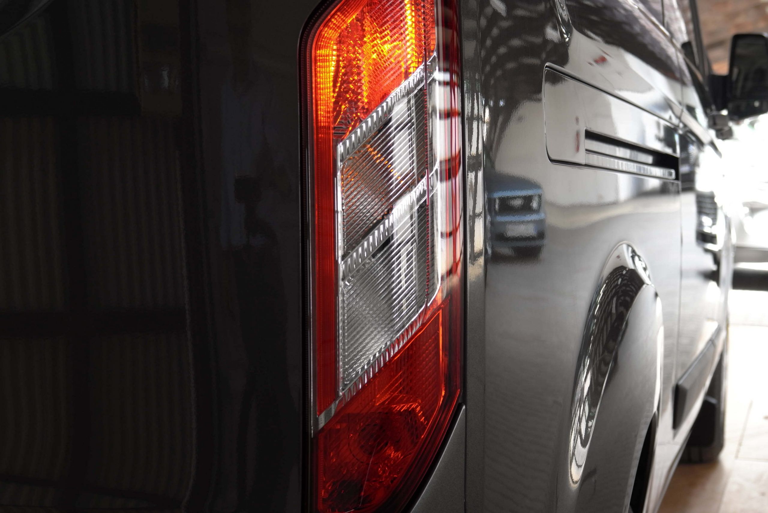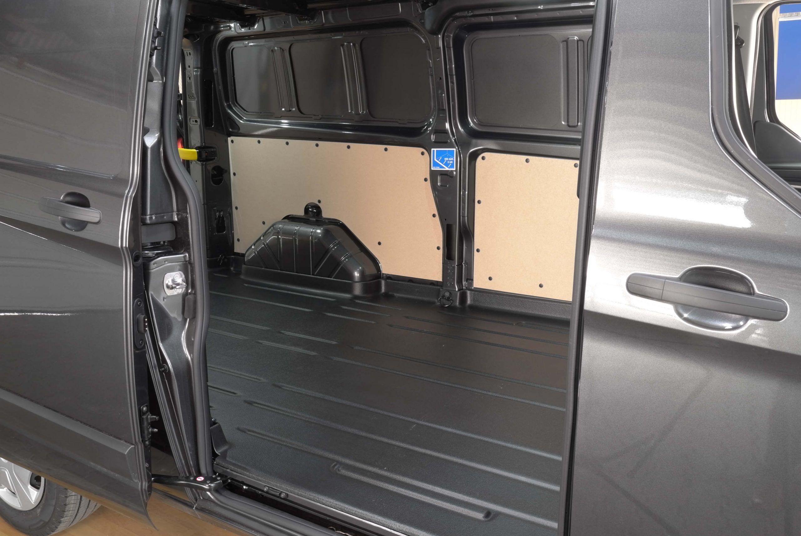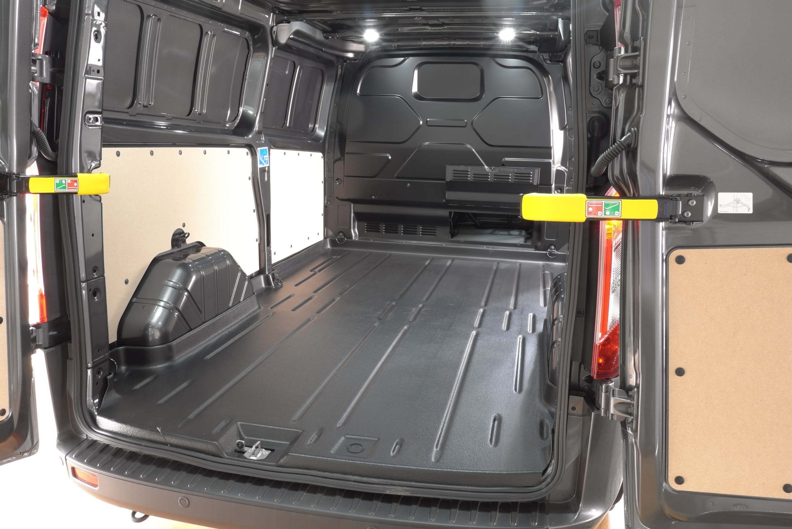 Der Laderaum besticht durch LED-Beleuchtung, Doppelflügelhecktüren und eine Schiebetür rechts. Eine Trennwand sichert den Laderaum ab. Unter dem Beifahrersitz gibt es eine Luke zum Laderaum, so daß Sie längere Gegenstände bis vorne durchladen können. Es gibt seitlich eine halbhohe Verkleidung und einen Ladeboden aus Vinyl. Eine 12V-Steckdose hinten darf nicht fehlen. Das Eigengewicht beträgt ca. 2.300 kg, so daß sich eine Nutzlast von ca. 900kg ergibt bei einem zul. Gesamtgewicht von 3.200kg.\\ \\