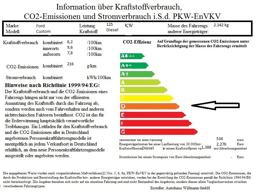 Verbrauch komb.: 8,2 l/100 Km