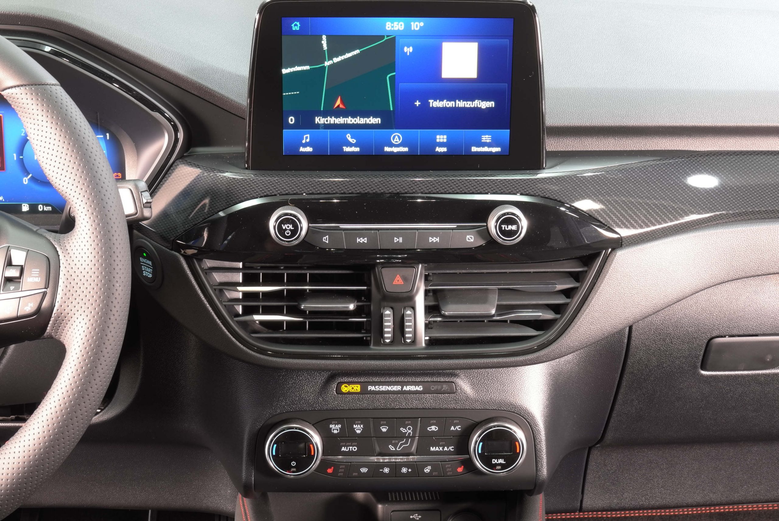Zu Ihrer Unterhaltung bietet dieser Kuga ein Radio mit Lenkradbedienung und USB-Anschluß. Ebenso gibt es das Navigationssystem mit großem Touchscreen und das Bluetooth Freisprechsystem SYNC3. Die können telefonieren ohne ihr Handy aus der Tasche nehmen zu müssen. Ebenso können Sie drahtlos Musikdateien vom Handy aufs Telefon übertragen. Mittels DAB können Sie digitales Radio in besonderer Qualität empfangen. Via AndroidAuto oder AppleCarPlay können Sie Apps vom Handy aufs Display kopieren, z.B Maps, Whatsapp etc. An der induktiven Ladestation können Sie das Handy kabellos laden.\\ \\
