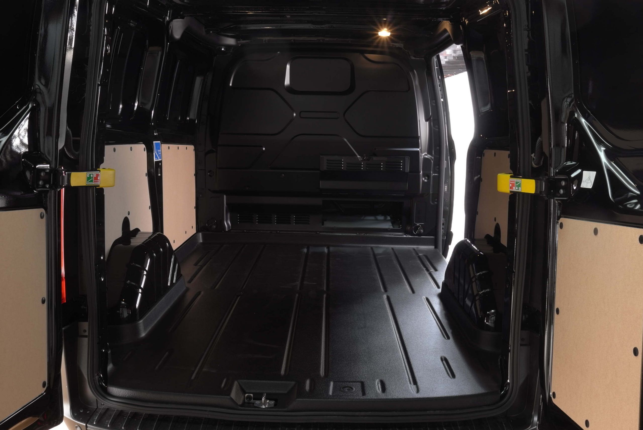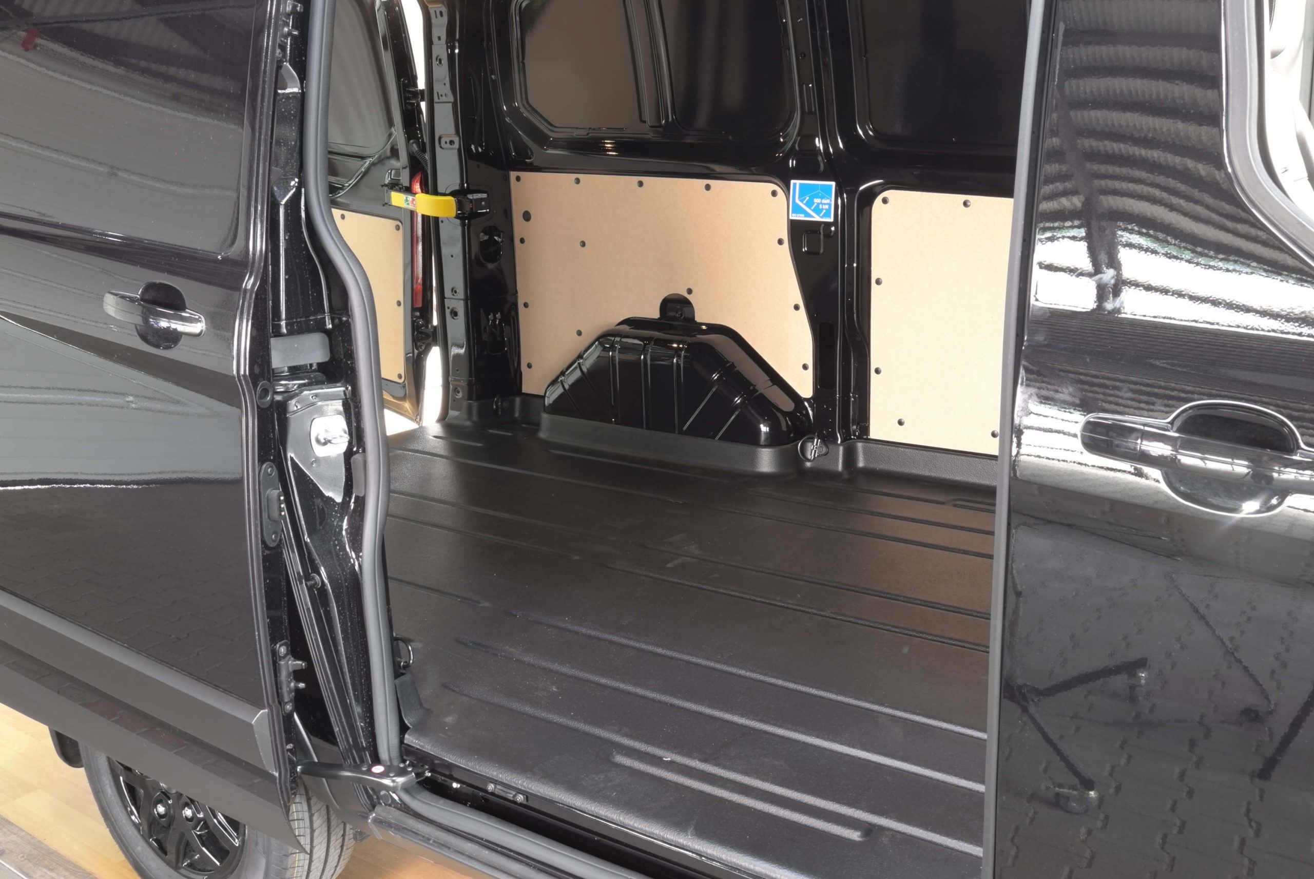 Der Laderaum besticht durch Doppelflügelhecktüren und eine Schiebetür rechts. Eine Trennwand sichert den Laderaum ab. Unter dem Beifahrersitz gibt es eine Luke zum Laderaum, so daß Sie längere Gegenstände bis vorne durchladen können. Es gibt seitlich eine hohe Verkleidung und einen Ladeboden aus Vinyl. Ebenso gibt es 8 Verzurrösen. Das Eigengewicht beträgt ca. 2.250 kg, so daß sich eine Nutzlast von ca. 1.150kg ergibt bei einem zul. Gesamtgewicht von 3.400kg.\\ \\