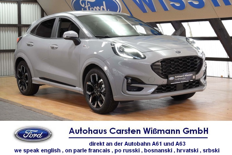 Dieses Fahrzeug ist ein Ford aus dem Baujahr 2023. Bei diesem PKW handelt es sich um das Modell Puma in der Variante ST-LineX Mild Hybrid.