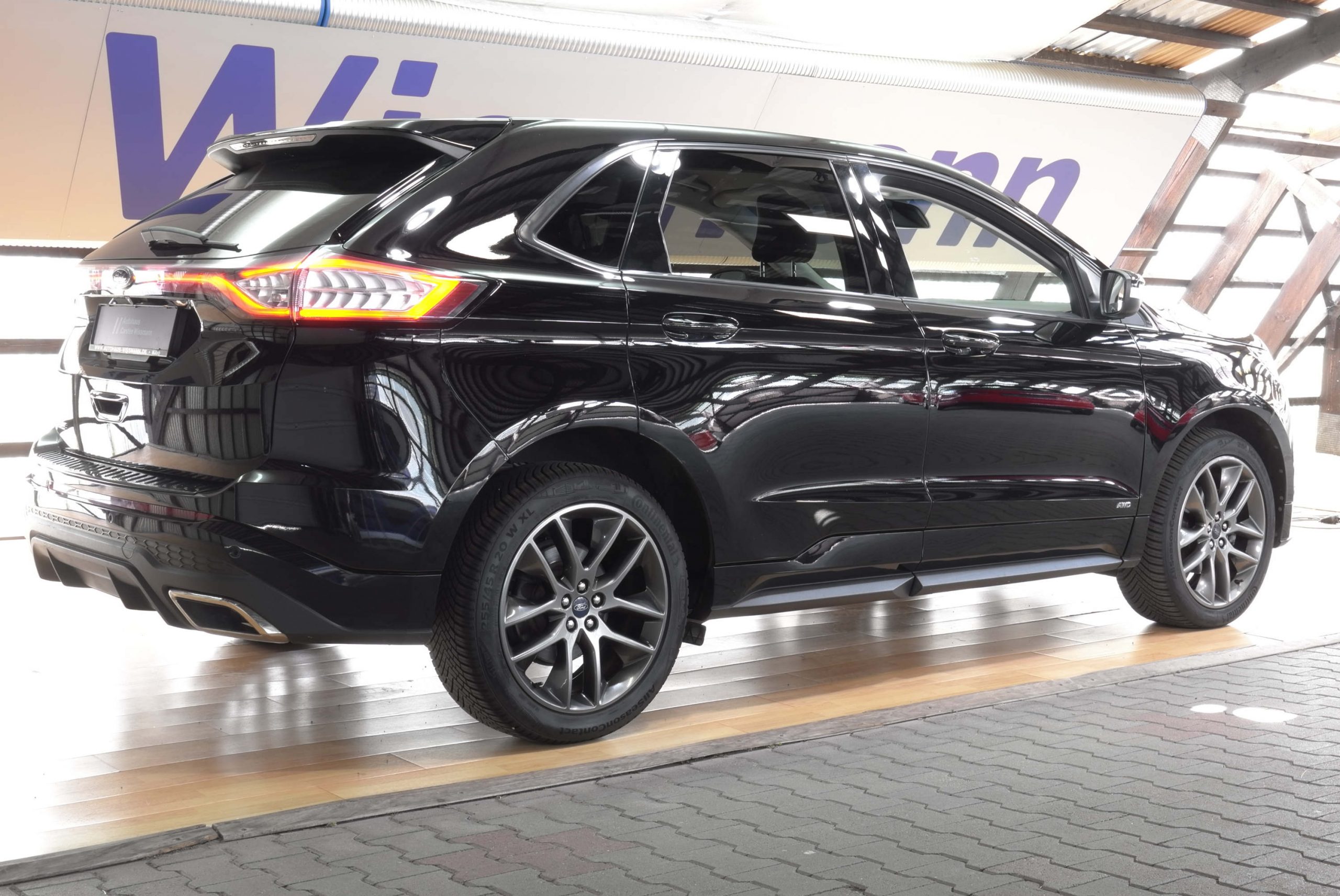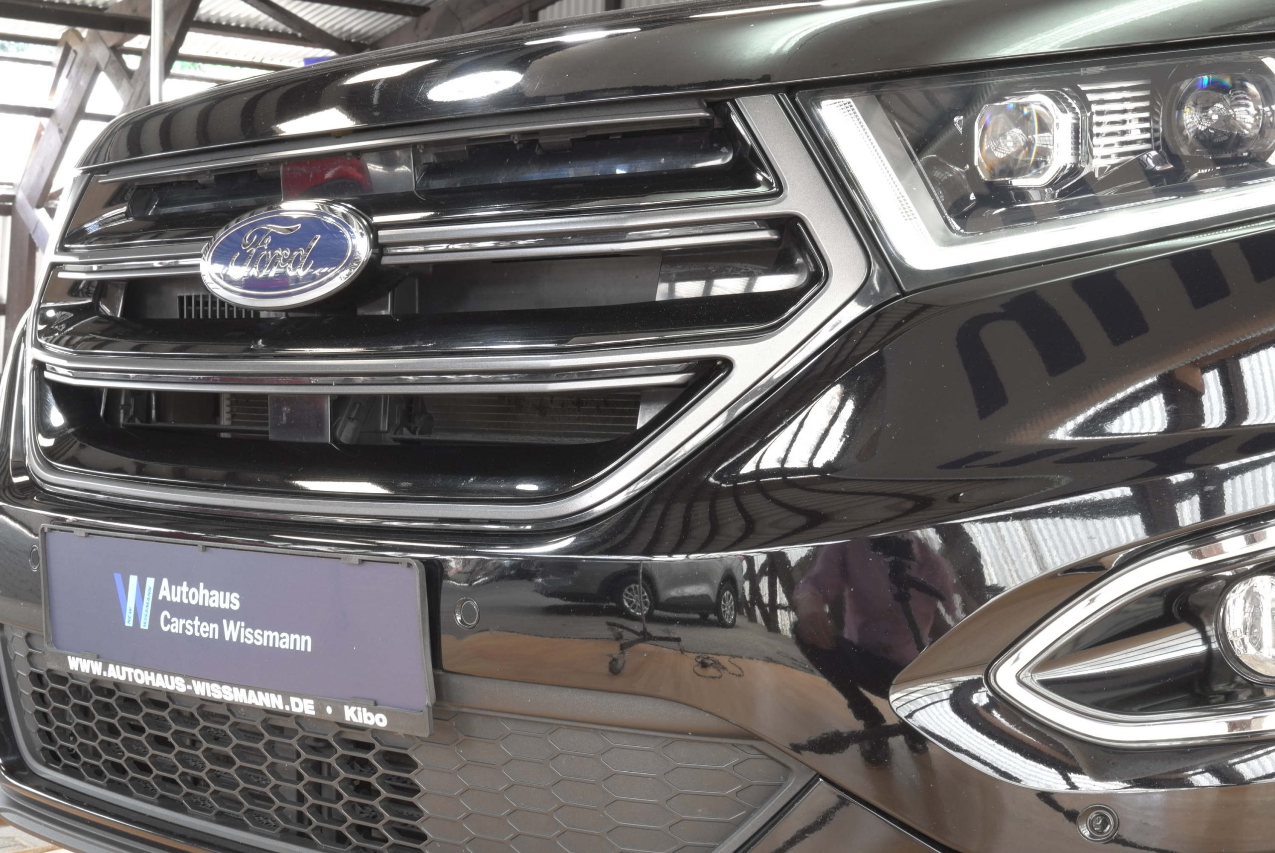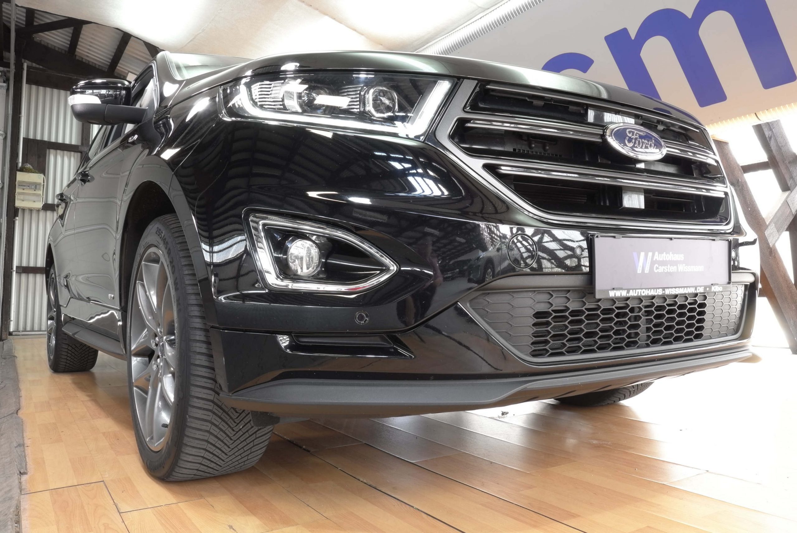 Dieses Fahrzeug ist ein Ford aus dem Baujahr 2018. Bei diesem PKW handelt es sich um das Modell Edge ST-Line.