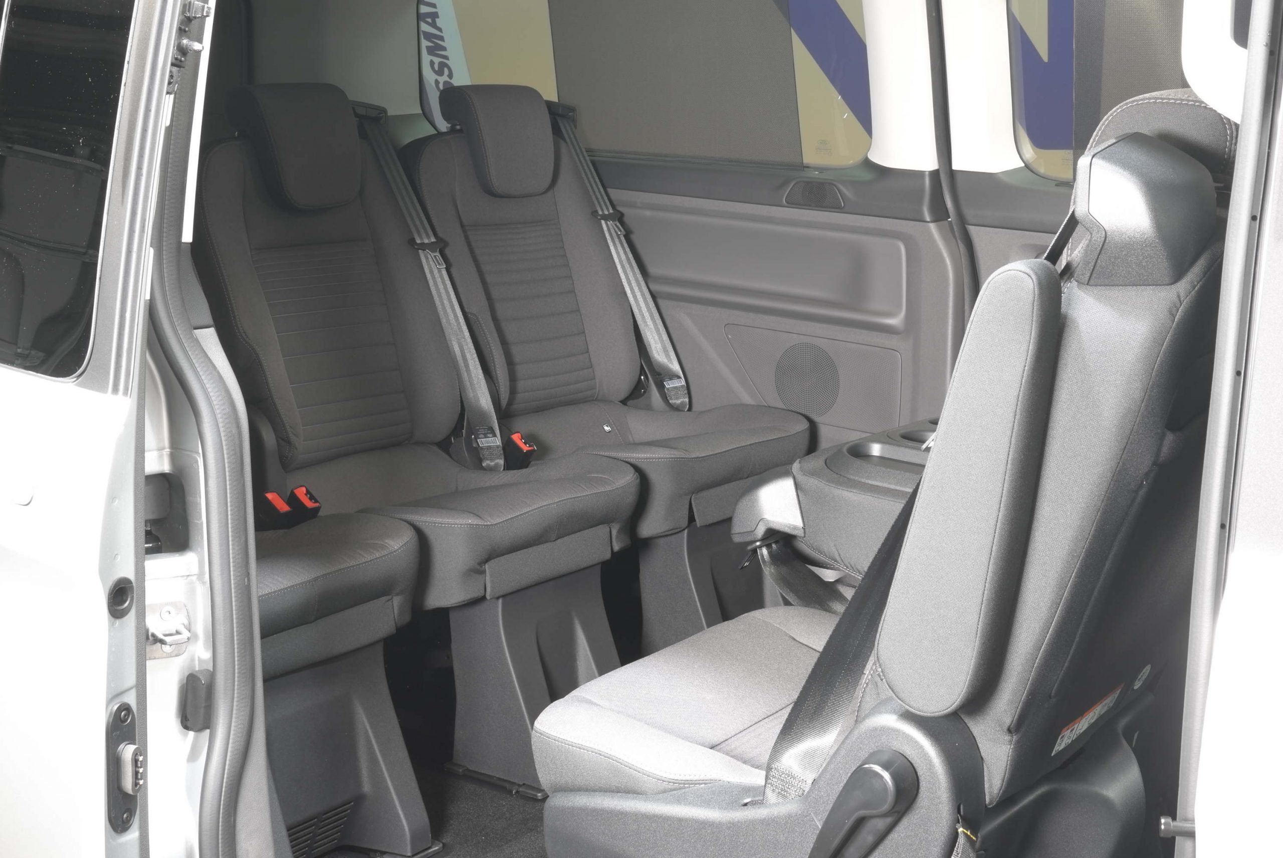 Hinten gibt es 6 Einzelsitze mit einstellbaren Rückenlehnen, herausnehmbar und umsetzbar (rückwärts), eine Wasserheizung hinten, Schiebetüren links und rechts und die Klimaanlage vorne und hinten. Für den Beifahrer gibt es einen komfortablen Einzelsitz. \\ \\