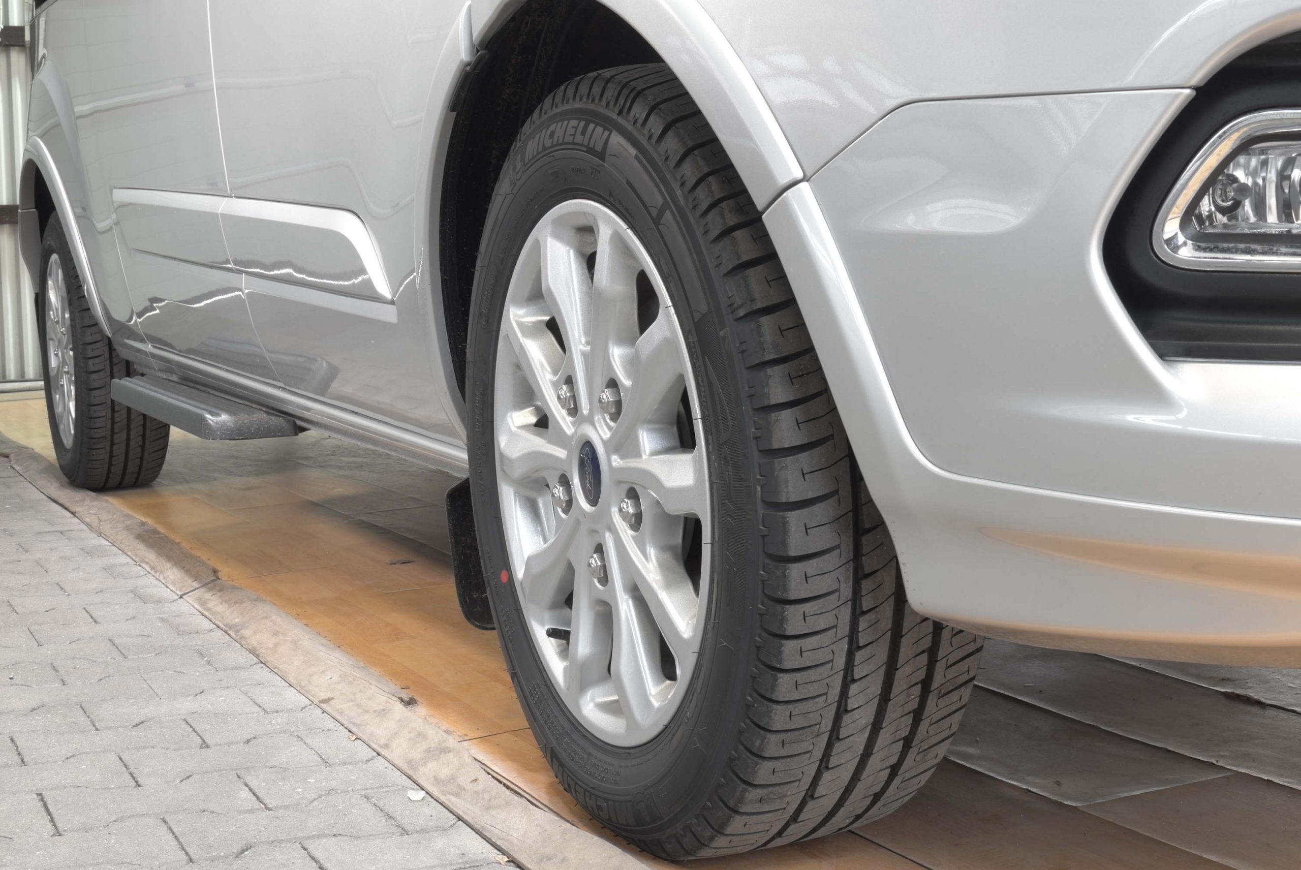 Seine besondere Note erhält der Titanium durch schicke 17 Zoll Leichtmetallfelgen, Polster Stoff, das Style-Farb-Paket (lackierte Stoßfänger, Zierleisten, Spiegel und Griffe) und abgedunkelte Scheiben hinten mit Klappfenstern. Im Innenraum gibt es Teppichboden, einen Dachhimmel aus gewebtem Stoff, Sonnenrollos, Ambientebeleuchtung, Premium Fußmatten und ein Lederlenkrad. Die Vordersitze haben Armlehnen, Lendenwirbelstützen und Sitzheizung. \\ \\