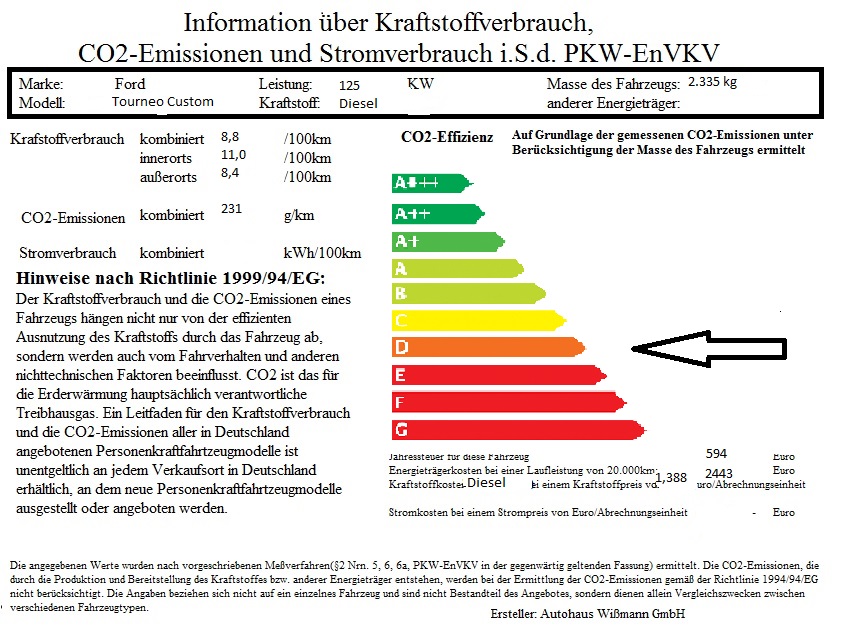 Verbrauch komb.: 8,9 l/100 Km
