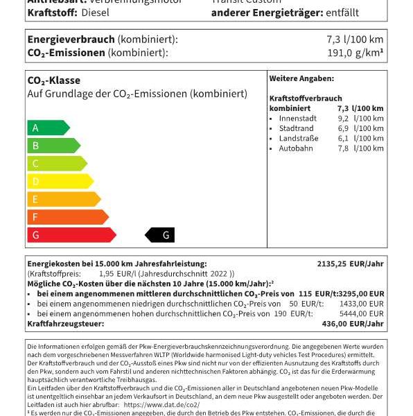 Verbrauch komb.: 7,3 l/100 Km