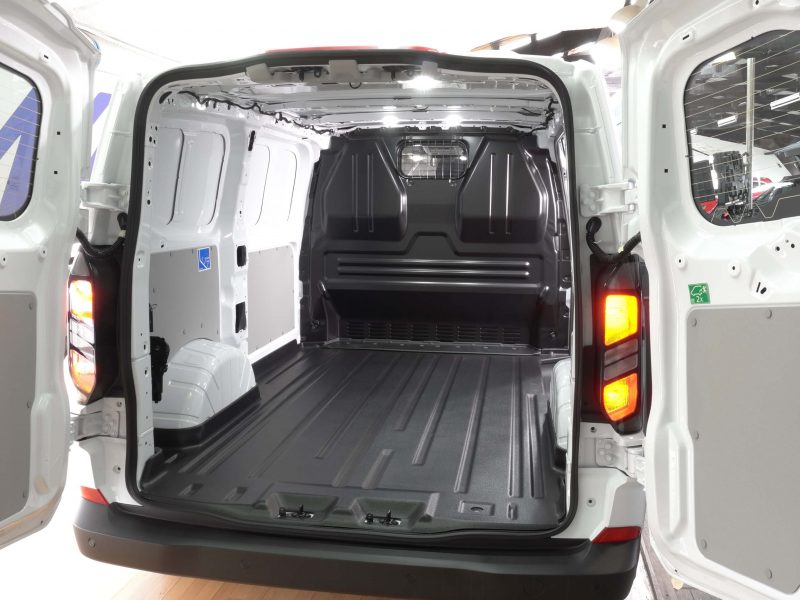 Der Laderaum besticht durch Doppelflügelhecktüren und eine Schiebetür rechts. Eine Trennwand sichert den Laderaum ab. Unter dem Beifahrersitz gibt es ein Staufach. Es gibt seitlich eine halbhohe Verkleidung und einen Ladeboden aus Vinyl. Das Eigengewicht beträgt ca. 2.050kg, so daß sich eine Nutzlast von ca. 1.150kg ergibt bei einem zul. Gesamtgewicht von 3.200kg. Besonders praktisch das LED-Downight, daß den Bereich hinter dem Fahrzeug ausleuchtet (beim beladen). Zur besseren Übersicht verfügt der Wagen über ein Fenster in der Trennwand und Fenster in den Hecktüren.\\ \\