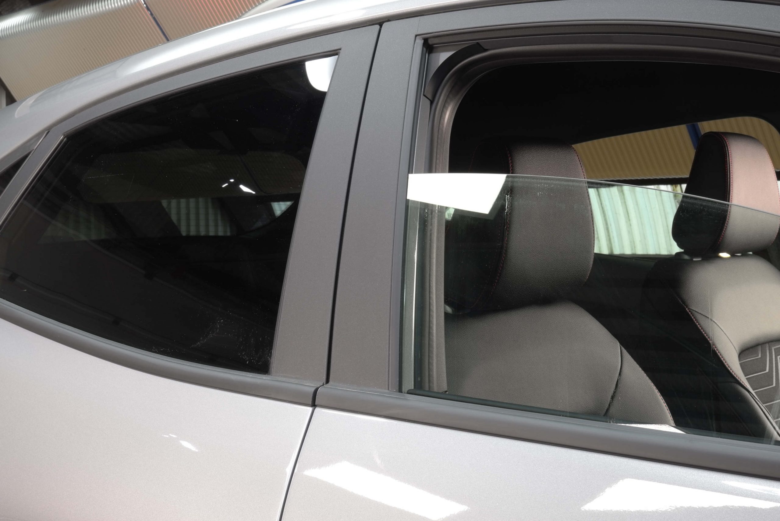 Schicke 18 Zoll Leichtmetallfelgen in silber/schwarz unterstreichen den sportlichen Charakter ebenso wie die abgedunkelten Scheiben hinten, der Heckspoiler und die schicken Polster in Leder-/Stoff. \\ \\