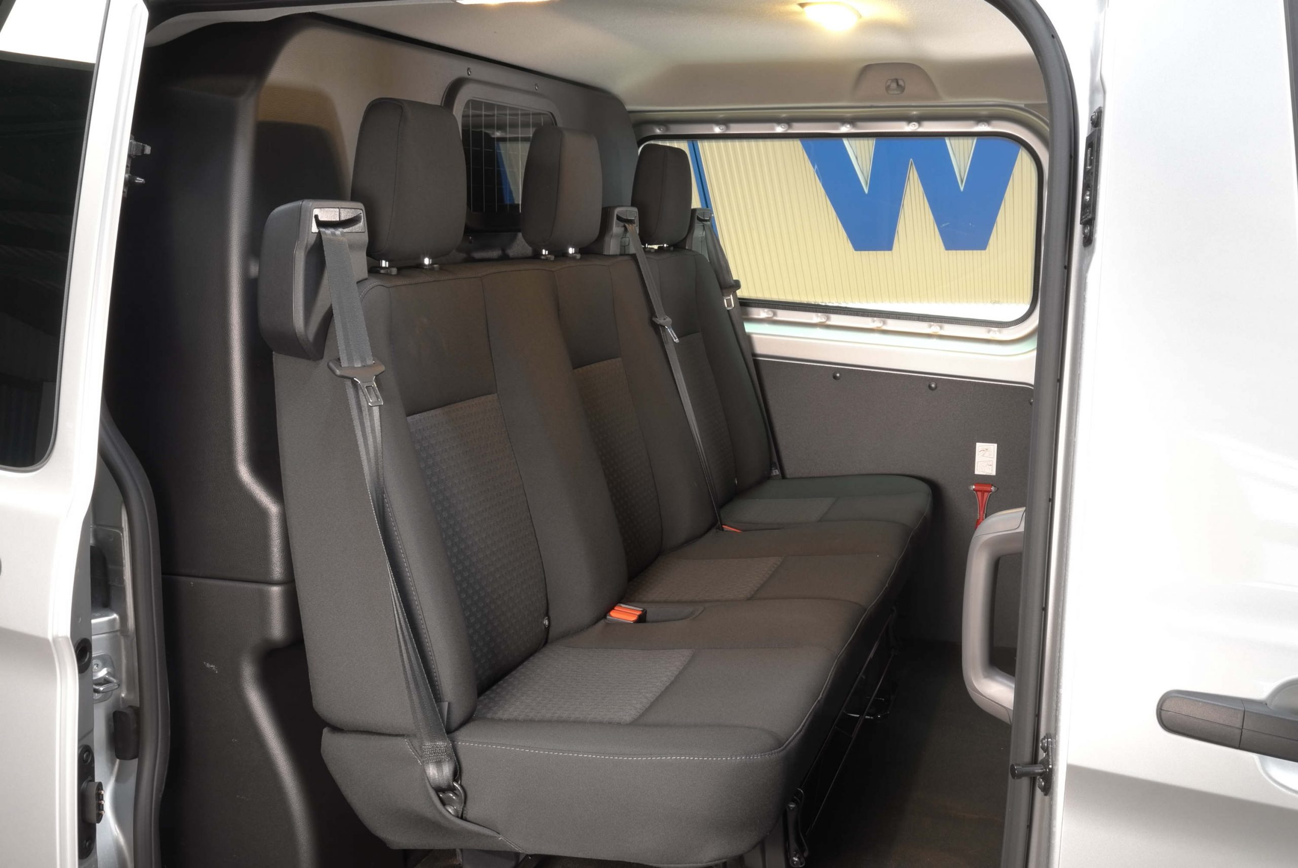 Darüber hinaus verwöhnt dieser Transit über eine Zentralverriegelung mit Fernbedienung, el. Fensterhebern vorne, dem Beifahrerdoppelsitz, 3 Rücksitzen, einer Schiebetür rechts und den Doppelfügeltüren hinten.\\ \\