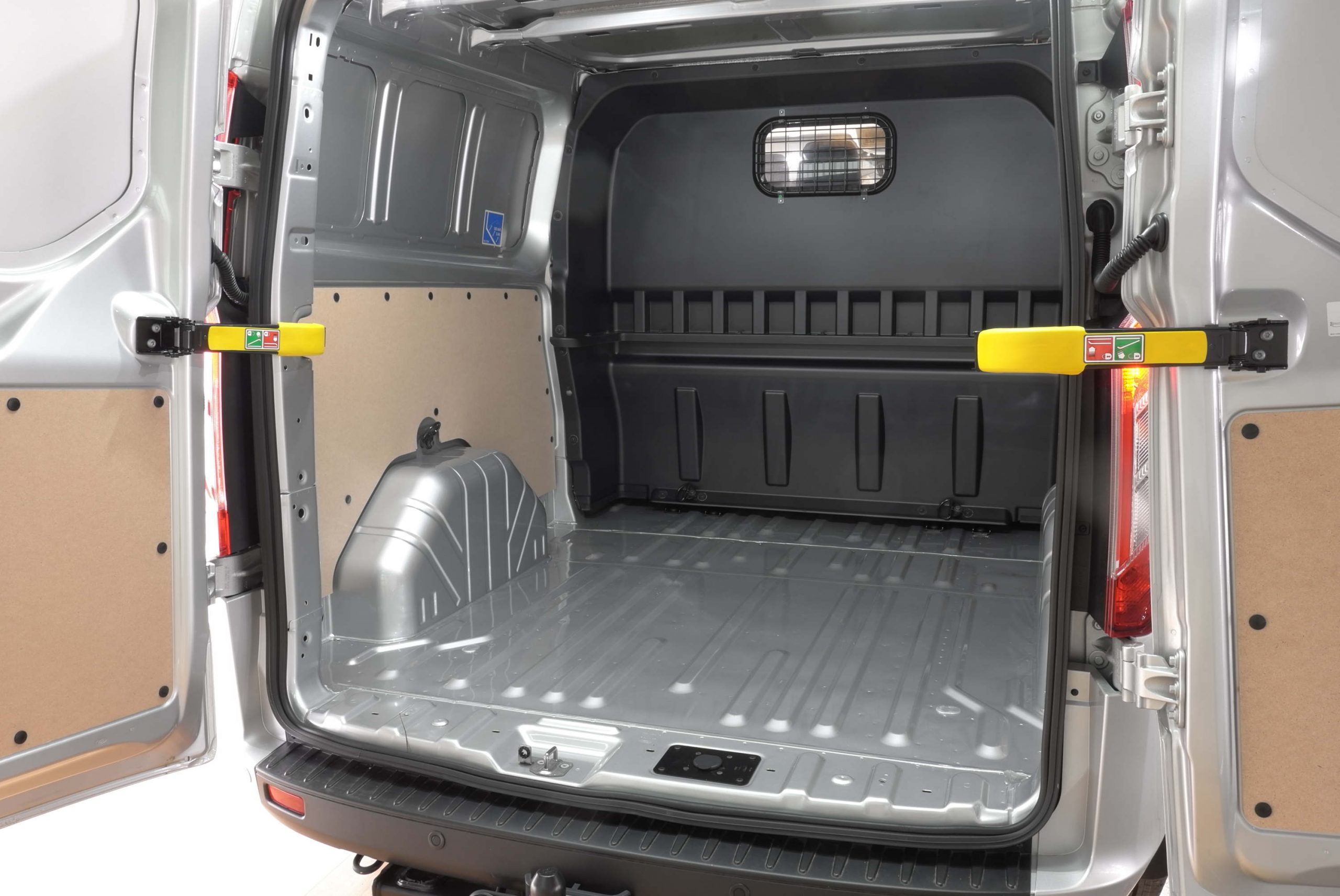 Der Laderaum besticht durch Doppelflügelhecktüren und eine Schiebetür rechts. Eine Trennwand sichert den Laderaum ab. Zul. Gesamtgewicht von 3.200kg.\\ \\