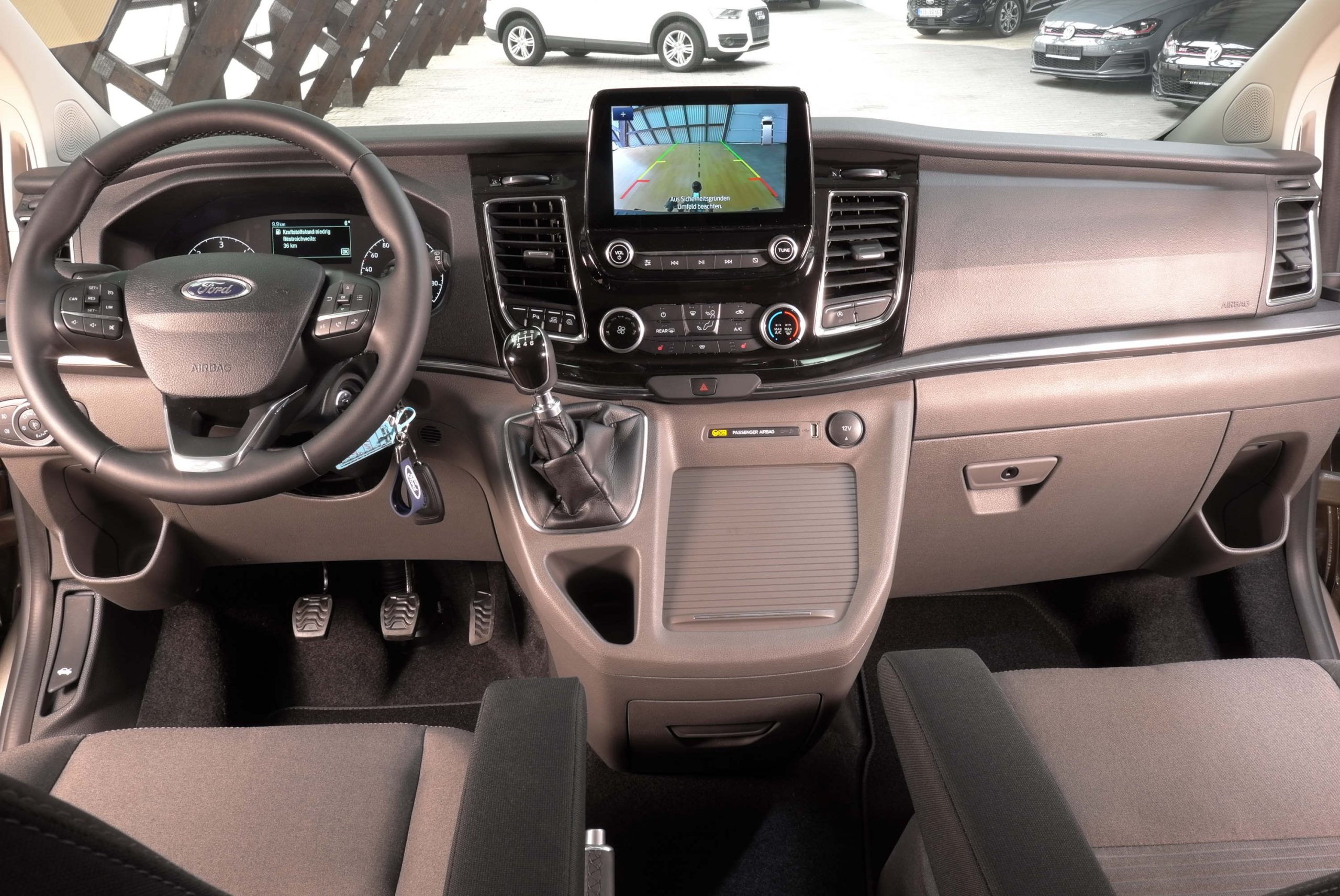 Darüber hinaus verwöhnt dieser Tourneo mit einem SpurhalteAssistenten, Rückfahrkamera, den Müdigkeitswarner, Zentralverriegelung mit Fernbedienung, el. Fensterhebern, elektr. verstellbaren und anklappbaren Außenspiegeln, einem Tempomaten, einer heizbaren Frontscheibe, Regensensor, automatischem Lichtschalter, Sitzheizung uvm. \\ \\