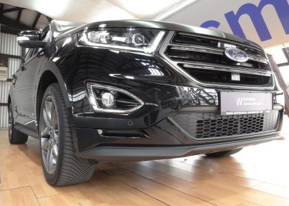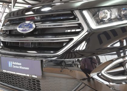 Dieses Fahrzeug ist ein Ford aus dem Baujahr 2018. Bei diesem PKW handelt es sich um das Modell Edge ST-Line.