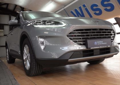 Dieses Fahrzeug ist ein Ford aus dem Baujahr 2022. Bei diesem PKW handelt es sich um das Modell Kuga in der Variante Titanium X Automatic Vollausstattung.