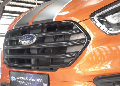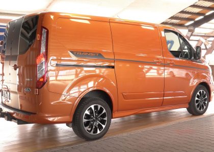 Dieses Fahrzeug ist ein Ford aus dem Baujahr 2021. Bei diesem LKW handelt es sich um das Modell Transit in der Variante Custom Sport 310, AHK, Xenon, Kamera.